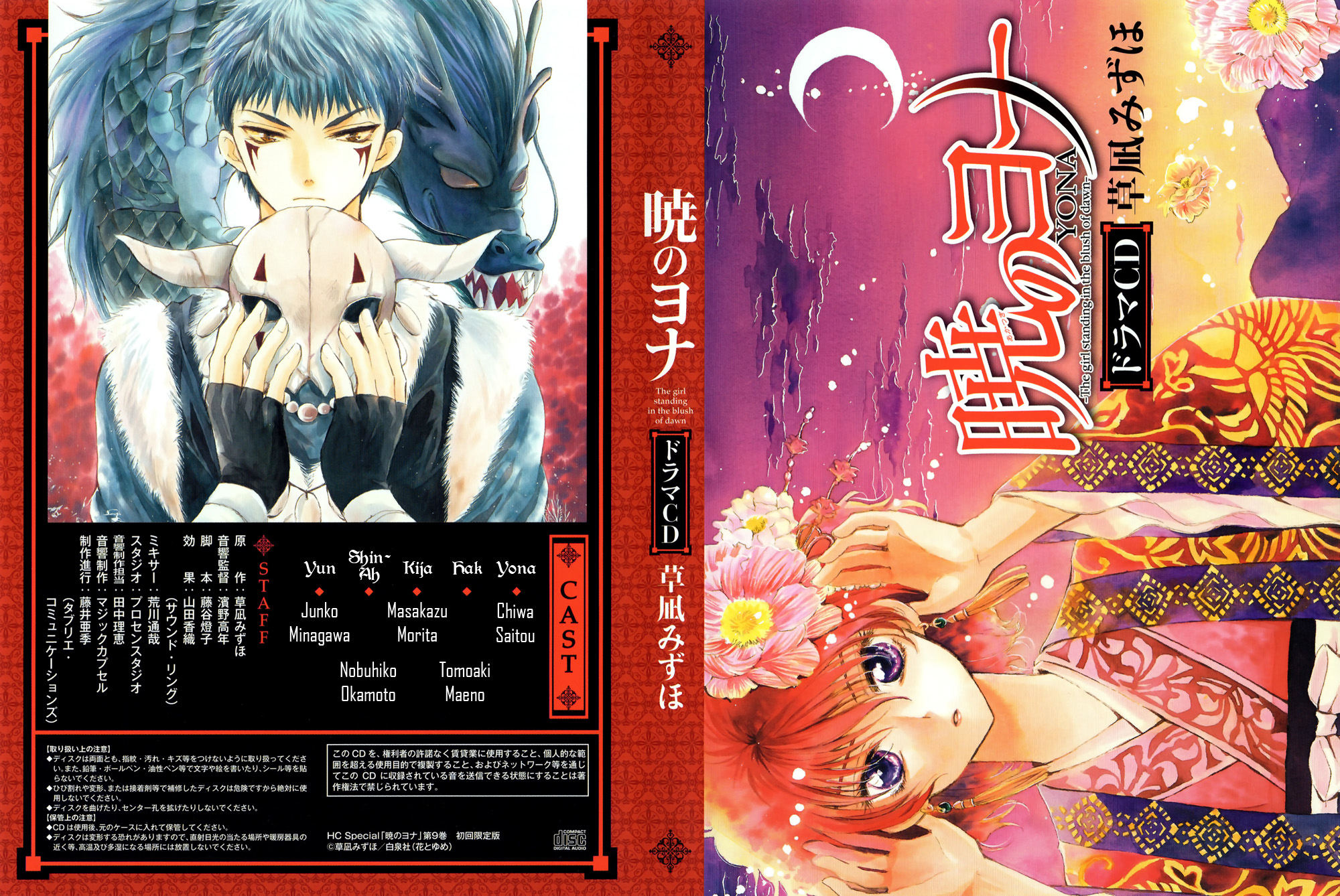 Le premier CD drama d'Akatsuki no Yona a été vendu avec l'édition limitée du tome 9. Ce CD comprend deux pistes : 01 - Main drama - chapitre de Seiryû (résumé de l'histoire jusqu'au chapitre 26) 02 - Main cast - table ronde (les doubleurs discutent de la série)